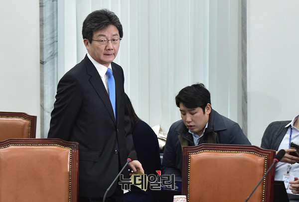 유승민 신임 바른정당 대표가 14일 오전 국회에서 열린 최고위원회의에 참석하기 위해 입장하고 있다.