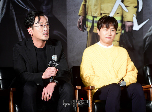 배우 하정우가 14일 오전 서울 광진구 롯데시네마 건대입구점에서 열린 영화 '신과 함께(감독 김용화)' 제작보고회에서 인사말을 하고 있다. '신과 함께'는 동명의 웹툰을 스크린에 옮겨 인간은 죽음 후 저승에서 각기 다른 지옥을 경험한다는 한국적 사후 세계관을 기반으로 한 영화. 오는 12월 20일 개봉.