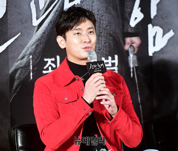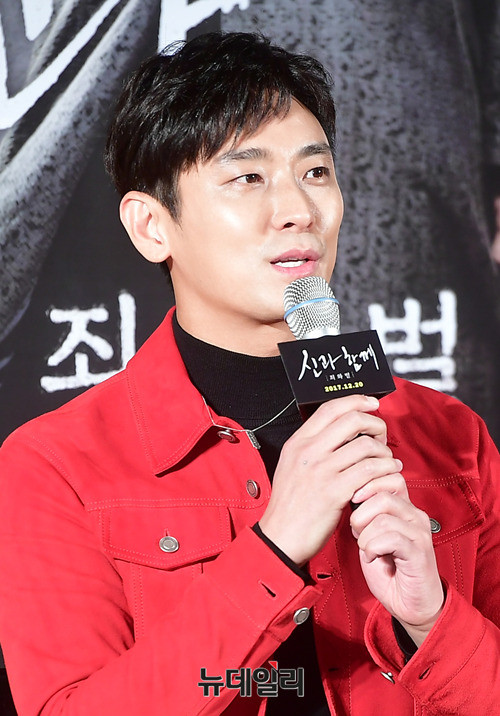 배우 주지훈이 14일 오전 서울 광진구 롯데시네마 건대입구점에서 열린 영화 '신과 함께(감독 김용화)' 제작보고회에서 인사말을 하고 있다. '신과 함께'는 동명의 웹툰을 스크린에 옮겨 인간은 죽음 후 저승에서 각기 다른 지옥을 경험한다는 한국적 사후 세계관을 기반으로 한 영화. 오는 12월 20일 개봉.