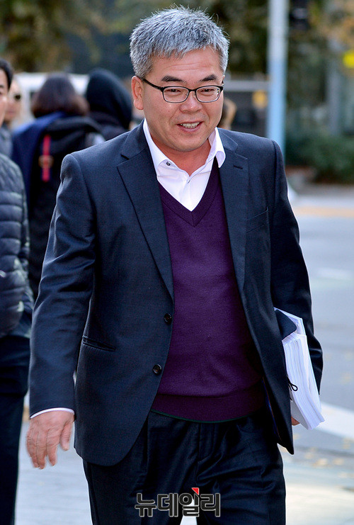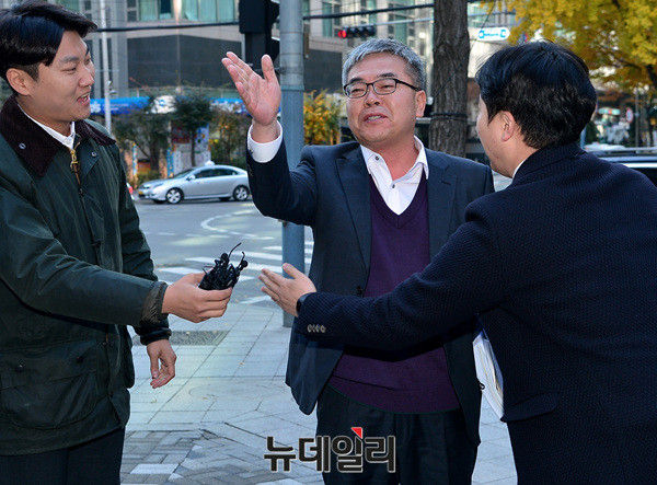 가수 김광석의 부인 서해순 씨의 변호인 박훈이 14일 오전 서울지방경찰청 민원실에서 딸 살해 혐의 의혹을 제기한 김광석 친형과 이상호 기자에 대해 무고 및 명예훼손 혐의 고소장을 접수하기 위해 들어서고 있다.
