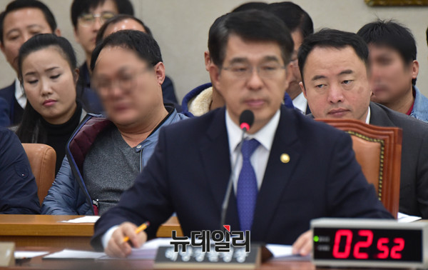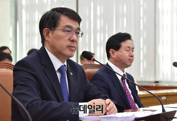 박경민 해양경찰청장이 14일 오전 국회 농림축산식품해양수산위원회 회의실에서 열린 전체회의에 출석해 의원들의 질문에 답하고 있다.
