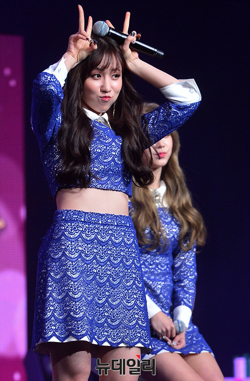 그룹 러블리즈(Lovelyz : 베이비소울, 유지애, 서지수, 이미주, Kei, JIN, 류수정, 정예인) 진이14일 오후 서울 용산구 블루스퀘어에서 열린 세 번째 미니앨범 '폴인러블리즈(Fall in Lovelyz)' 발매 기념 쇼케이스에 참석해 포즈를 취하고 있다.