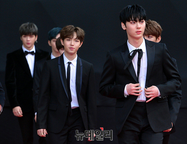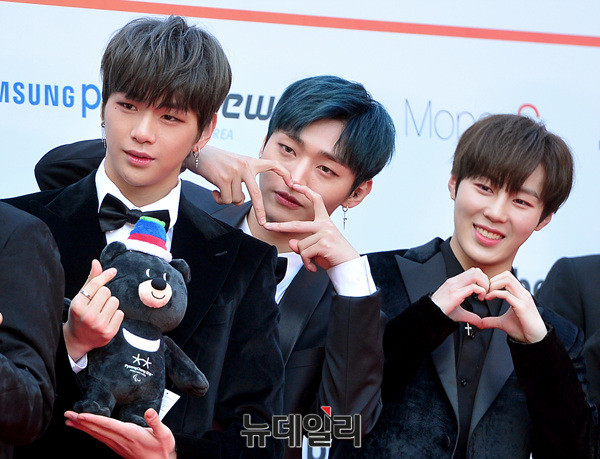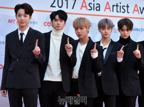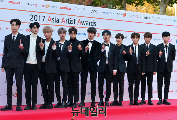 그룹 워너원(Wanna One : 강다니엘, 박지훈, 이대휘, 김재환, 옹성우, 박우진, 라이관린, 윤지성, 황민현, 배진영, 하성운)이 15일 오후 서울 잠실종합운동장에서 열린 '2017 아시아 아티스트 어워즈(ASIA ARTIST AWARDS)'에 참석해 포즈를 취하고 있다.