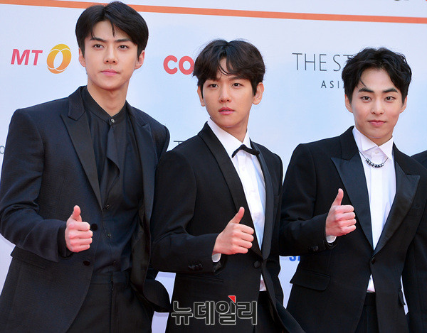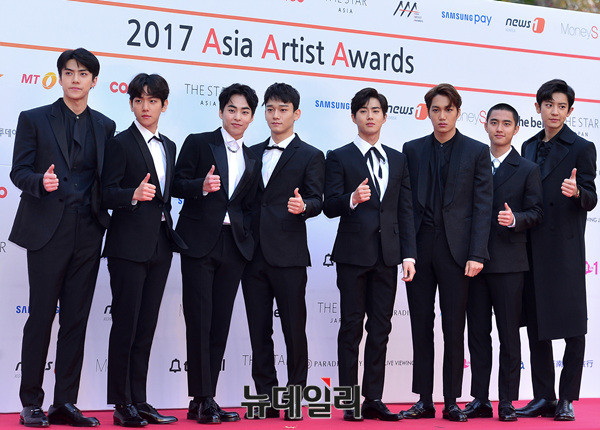 그룹 엑소(EXO : 수호, 찬열, 카이, 디오, 백현, 세훈, 시우민, 첸, 레이, 타오, 루한, 크리스)가 15일 오후 서울 잠실종합운동장에서 열린 '2017 아시아 아티스트 어워즈(ASIA ARTIST AWARDS)'에 참석해 포즈를 취하고 있다.