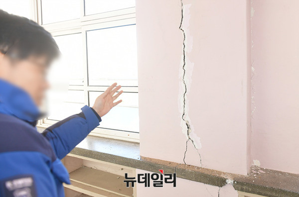 임시휴교지만 교사들은 학교에 출근했다. 붕괴위험으로 학교 내부로 들어가지 못하고, 운동장이나 차에서 대기하고 있다. 학교 관계자는 "조속한 안전평가가 이뤄져야 휴교 연장이나 이후 조치를 할 수 있는 상태"라며 고충을 털어놓기도 했다. 포항지역 초·중·고 129곳의 학교는 오는 17일까지 임시휴교에 들어간 상태다. (경북 포항=뉴데일리 정상윤 기자)