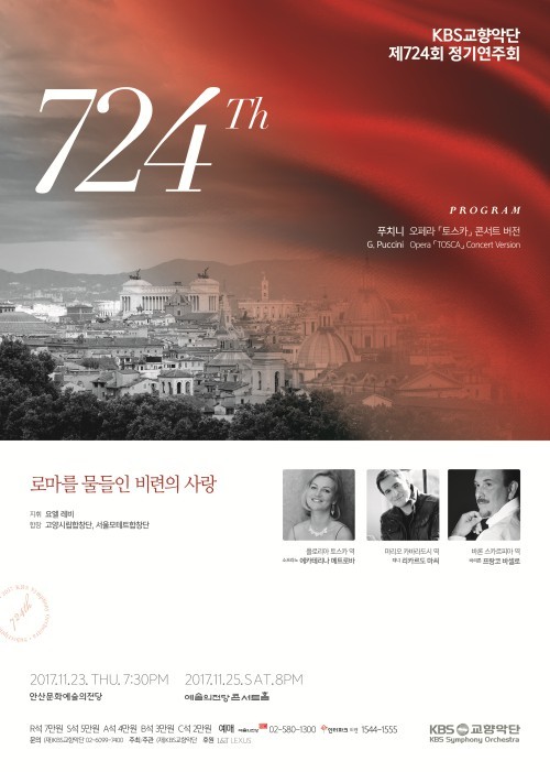 KBS교향악단이 푸치니의 오페라 '토스카'를 오케스트라 버전으로 들려준다.오는 25일 예술의전당에서 열리는 'KBS교향악단 제724회 정기연주회'에서는 '로마를 물들인 비련의 사랑'이라는 주제로 오페라 '토스카'를 선보인다.음악감독 요엘 레비가 지휘봉을 잡으며 소프라노 에카테리나 메트로바(토스카 역), 테너 리카드로 마씨(카바라도시역), 바리톤 프랑코 바셀로(스카르피아 역) 등이 출연한다.전 3막으로 이뤄진 '토스카'는 비극적인 멜로드라마로, 오페라 가수 토스카의 연인인 카바라도시가 우연히 정치범 안젤로티를 숨겨주게 되면서 이야기는 시작된다.로마에 실재하는 역사적 장소 3곳을 배경으로 삼아 극적인 긴장감을 더하고 있다. '오묘한 조화', '노래에 살고 사랑에 살고', '별은 빛나건만' 등 아름다운 아리아들이 등장해 깊은 비극적 감동을 자아낸다.관람료 2만~7만원. 문의 02-6099-7400.[사진=KBS교향악단]