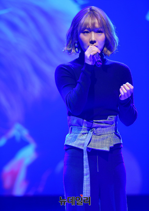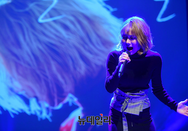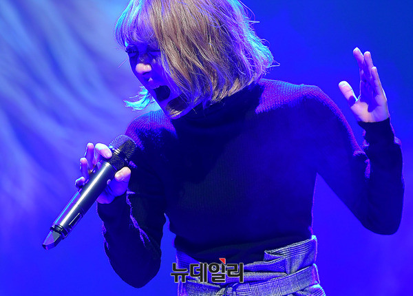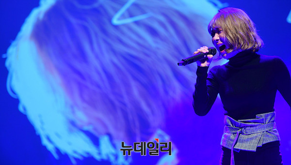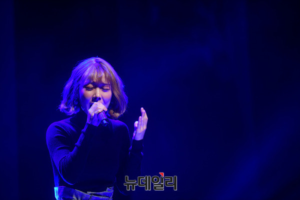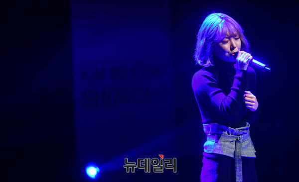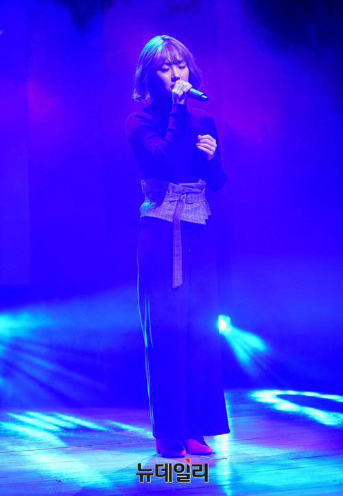 가수 김보경이 21일 오후 서울 강남구 일지아트홀에서 열린 '김보경X먼데이키즈' 컬래버레이션 앨범 '이별선물' 쇼케이스에서 열창을 하고 있다. '이별선물'은 범키와 박채원의 작사, 작편곡가 한재준의 섬세한 감성이 만들어 낸 곡이다. 음원은 이날 정오 공개됐다.