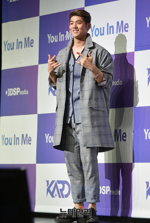 혼성그룹 KARD 멤버 비엠이 21일 오후 서울 광진구 예스24 라이블홀에서 2번째 미니앨범 'YOU & ME(유 엔 미)' 쇼케이스에서 포토타임을 갖고 있다. 이번 앨범 'YOU & ME'는 모든 트랙이 하나의 스토리로 연결된 드라마틱한 앨범으로 총 9트랙을 담았다. 타이틀곡은 'You In ME(유 인 미)'.