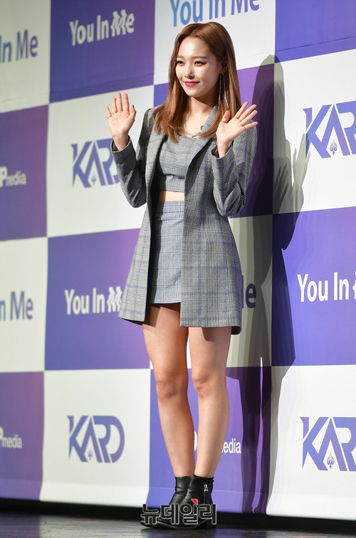 혼성그룹 KARD 멤버 전소민이 21일 오후 서울 광진구 예스24 라이블홀에서 2번째 미니앨범 'YOU & ME(유 엔 미)' 쇼케이스에서 포토타임을 갖고 있다. 이번 앨범 'YOU & ME'는 모든 트랙이 하나의 스토리로 연결된 드라마틱한 앨범으로 총 9트랙을 담았다. 타이틀곡은 'You In ME(유 인 미)'.