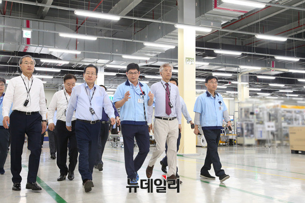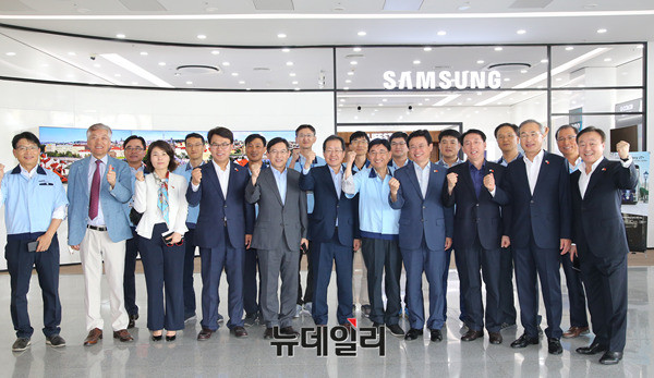 홍준표 자유한국당 대표를 비롯한 방문단이 21일 베트남 호찌민시에 위치한 삼성전자 가전복합단지를 방문해 기념촬영을 하고 있다. (사진=자유한국당)