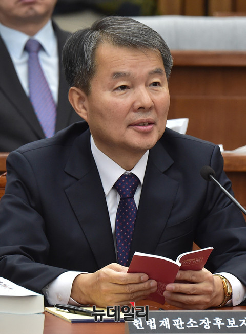 [포토] 헌법 들고 청문회 임하는 이진성 헌재소장