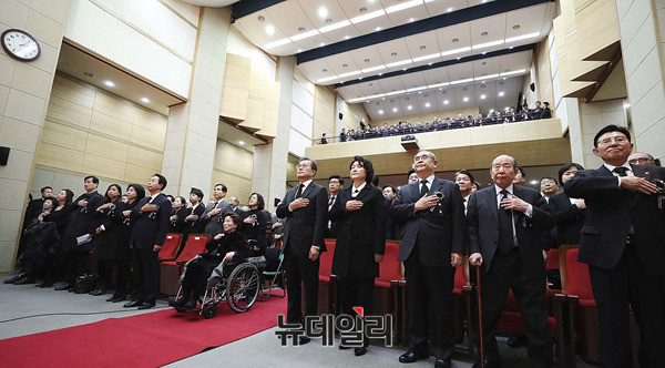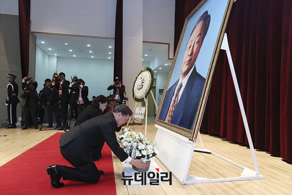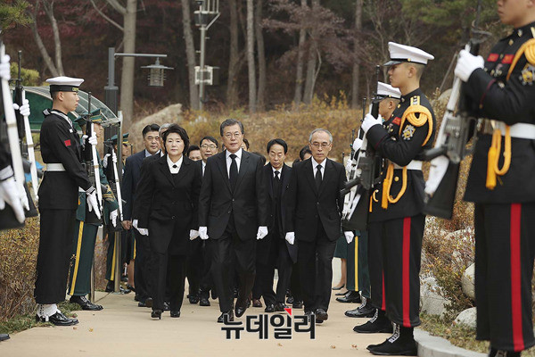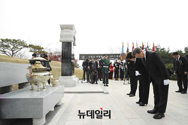 문재인 대통령이 22일 오후 국립서울현충원 현충관에서 열린 故 김영삼 전 대통령 서거 2주기 추모식에 참석해 추모사를 하고 있다. (사진=청와대)
