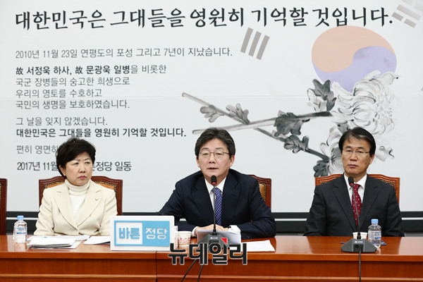 바른정당 유승민 대표가 23일 오전 국회 당대표 회의실에서 열린 최고위원-국회의원 연석회의에서 모두발언을 하고 있다.