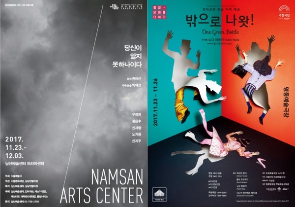 서울문화재단 남산예술센터의 '당신이 알지 못하나이다'와 국립극단 초청작 '밖으로 나왓!'이 오늘(23일) 개막한다.'당신이 알지 못하나이다'는 남산예술센터 2017년 시즌 프로그램 마지막 작품으로, 12월 3일까지 드라마센터 무대에 올린다.원작인 '당신이 알지 못하나이다'는 2016년 '안녕 주정뱅이'로 문단의 화제를 몰고 온 권여선 작가의 신작 중편소설로 제17회 이효석문학상 우수작품상을 수상했다.여고생 김해언 살인사건 이후 가해자와 피해자의 삶을 추적하는 내용을 담았다. 충분히 애도되지 못한 죽음이 남은 이들에게 어떤 흔적과 파장을 남기는지에 대해 집요하게 바라본다.각색과 연출을 맡은 박해성은 "죽음이 만들어낸 치명적인 파장에 대한 섬세한 이야기다. 이 작품이 죽음에 대해서 조용히 애도하고 성찰을 할 수 있는 침묵의 기회를 줄 수 있다면 좋겠다"라고 설명했다.'당신이 알지 못하나이다'는 남산예술센터, 인터파크, 대학로티켓닷컴, 클립서비스, 예스24공연, 옥션·지마켓 등 사이트를 통해 예매할 수 있다. 2018년 대학수학능력시험 수험표 지참 시 1만원이다. 전석 3만원. 문의 02-758-2150.