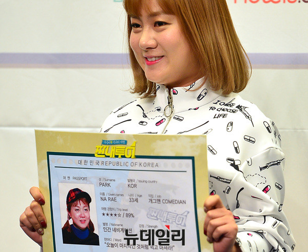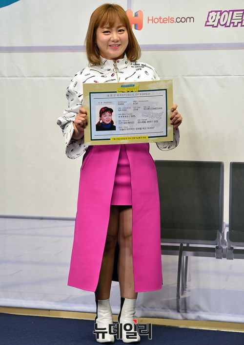 개그우먼 박나래가 23일 오전 서울 마포구 스탠포드호텔에서 열린 tvN 예능프로그램 '짠내투어' 제작발표회에 참석해 포토타임을 갖고있다.