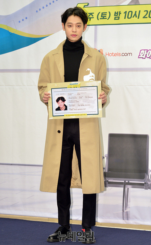 가수 정준영이 23일 오전 서울 마포구 스탠포드호텔에서 열린 tvN 예능프로그램 '짠내투어' 제작발표회에 참석해 포토타임을 갖고있다.
