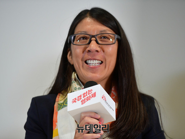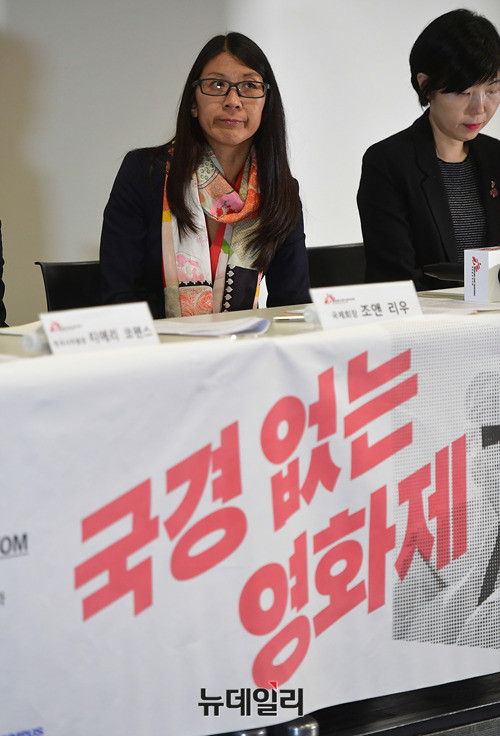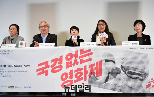 '조앤 리우(Joanne Liu)' 국경없는의사회 국제회장이 23일 오후 서울 광화문씨네큐브에서 열린 국경없는영화제 2017 기자간담회에서 인사말을 하고 있다. '세계는 우리의 응급실입니다'를 슬로건으로 한 국경없는영화제 2017은 오는 12월 1일부터 3일까지 아트하우스 모모(이화여대ECC)에서 개최된다.