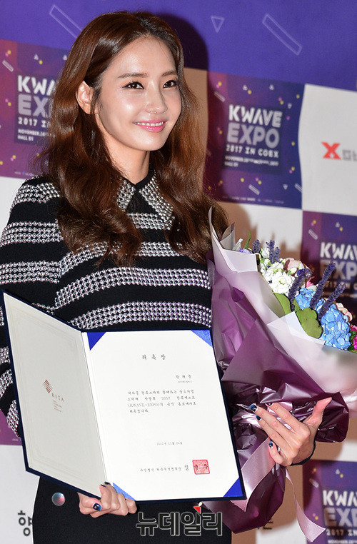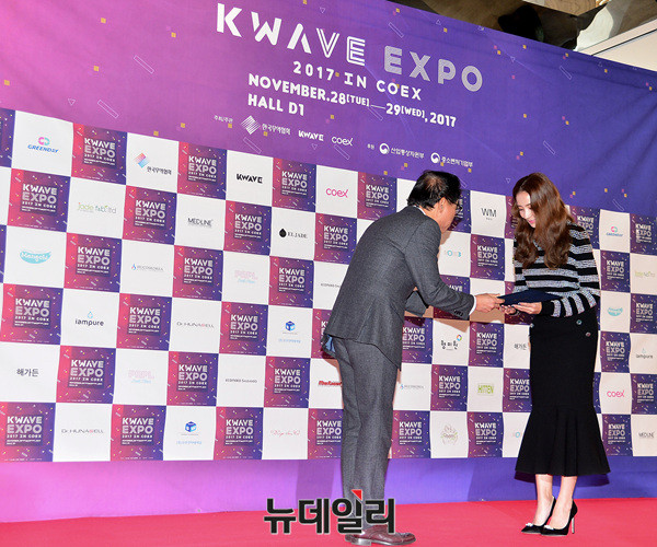 배우 한채영이 24일 오전 서울드래곤시티 노보텔 앰버서더에서 열린 '한류엑스포(KWAVE-EXPO 2017)'홍보대사 위촉식에 참석해 인사말을 하고 있다.