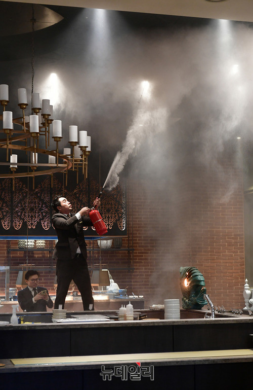 이날 포토월 행사에 앞서 행사장 천장에서 전기 합선으로 화재가 발생했지만 직원들의 빠른 대처로 화재는 초기에 진압됐다.