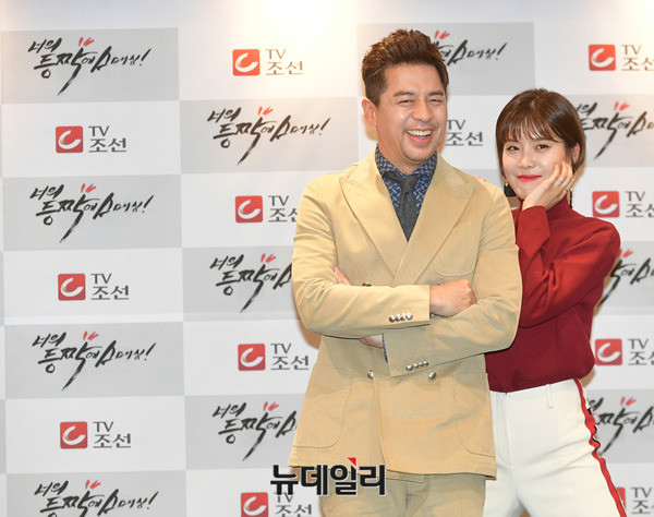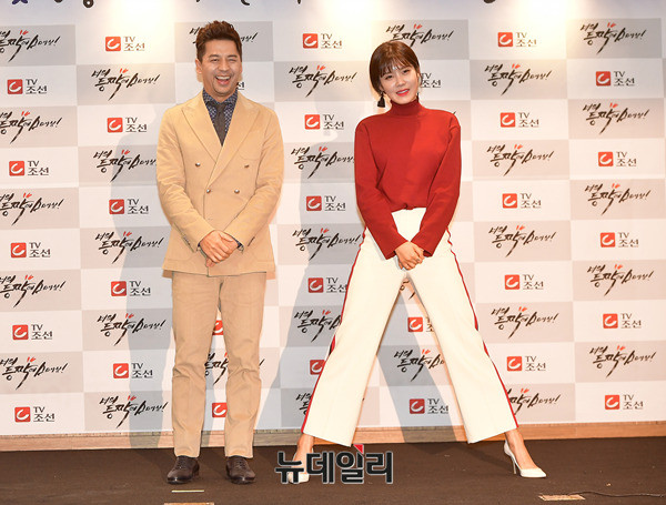 배우 권오중과 장도연이 27일 오후 서울 중구 코리아나호텔에서 열린 일일극 '너의 등짝에 스매싱(감독 김정식, 작가 이영철)' 제작보고회에서 포토타임을 갖고 있다. '너의 등짝에 스매싱'은 한 청춘이 꿈과 사랑에 대해 눈뜨는 성장기를 담은 일일극으로 오는 12월 4일 첫 방송 예정이다.