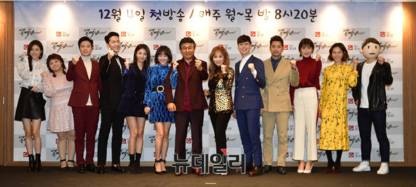 일일극 '너의 등짝에 스매싱(감독 김정식, 작가 이영철)' 출연자들이 27일 서울 중구 코리아나호텔에서 열린 제작보고회에서 포토타임을 갖고 있다. '너의 등짝에 스매싱'은 한 청춘이 꿈과 사랑에 대해 눈뜨는 성장기를 담은 일일극으로 오는 12월 4일 첫 방송 예정이다.