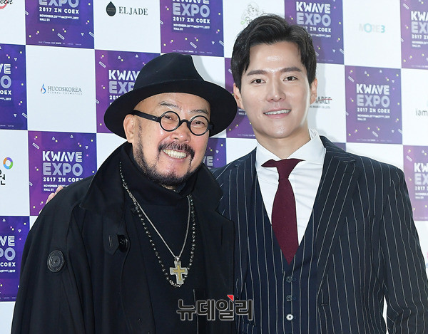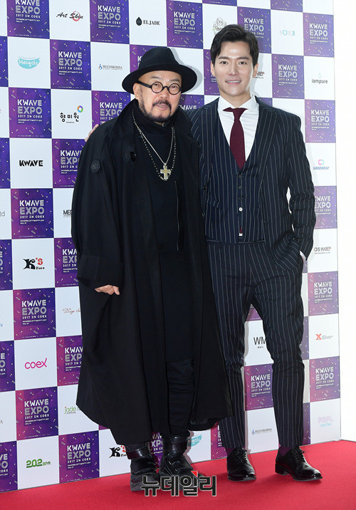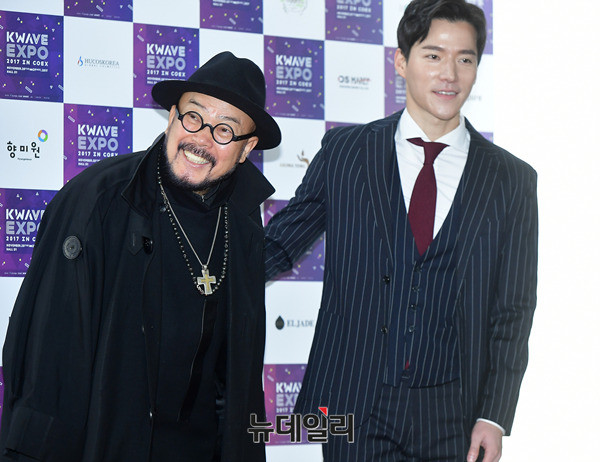 이상봉 디자이너, 배우 조태관이 28일 오전 서울 강남구 코엑스 D홀에서 열린 한류엑스포(KWAVE-EXPO 2017) 개막식 행사에 앞서 포토타임을 갖고 있다.