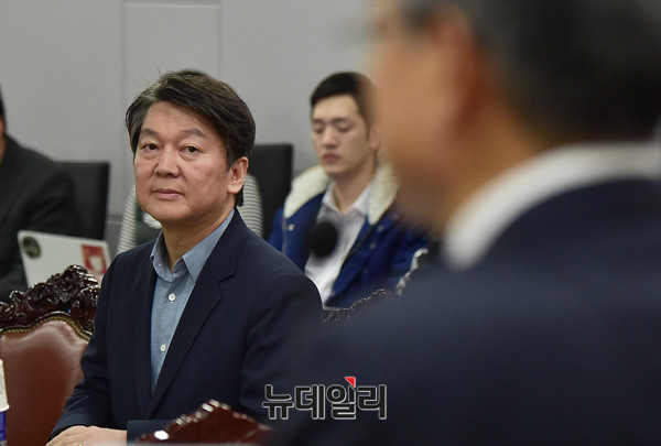 국민의당 안철수 대표가 28일 오후 국회의원회관에서 국민의당제2창당위원회 주최로 열린 '다당제 정착을 위한 과제와 국민의당의 진로' 토론회에 참석해 김동철 원내표의 모두발언을 바라보고 있다.
