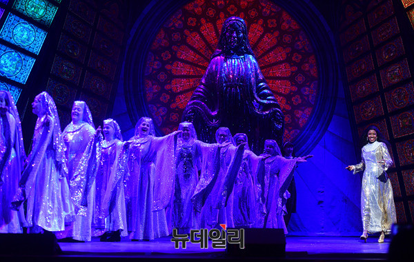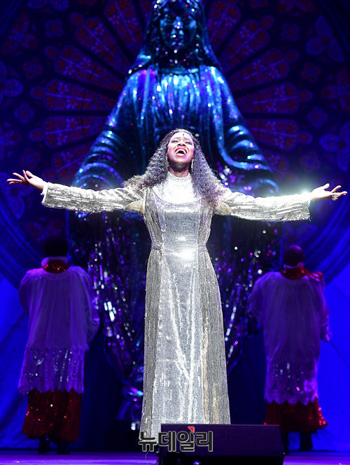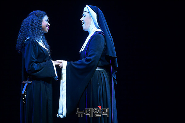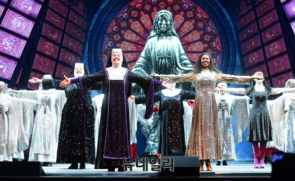 • 뮤지컬 '시스터 액트' 출연 배우들이 28일 오후 서울 용산구 블루스퀘어 인터파크홀에서 열린 프레스콜에서 하이라이트 장면을 시연하고 있다. 내한 공연으로 꾸며지는 뮤지컬 '시스터 액트'는 28일부터 마지막 티켓오픈을 진행한다. 공연은 내년 1월 21일까지 블루스퀘어 인터파크홀에서 열린다.