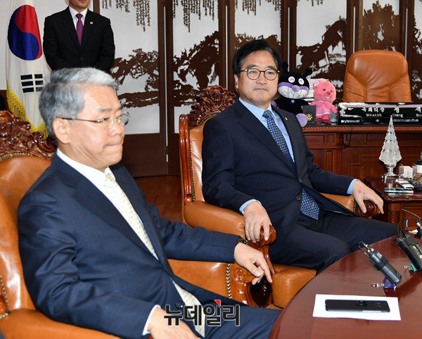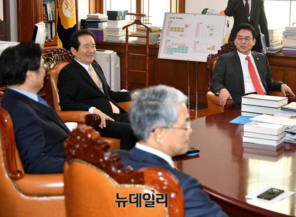 정 의장은 이날 3당 원내대표들에게 "금년에도 12월 2일 법정시한 내에 예산안이 처리될 수 있도록 교섭단체 지도부뿐만 아니라 의원들도 함께 힘을 좀 모아주셨으면 좋겠다"고 말했다.