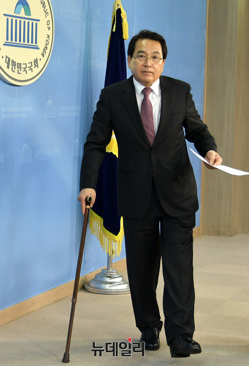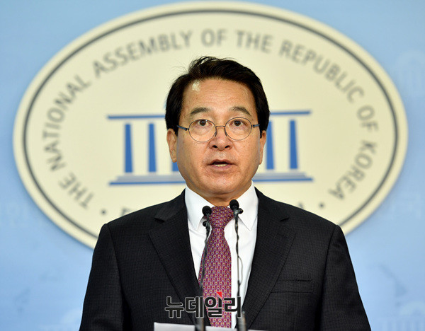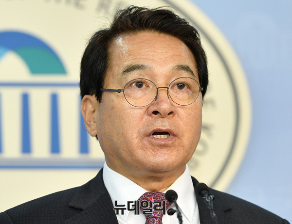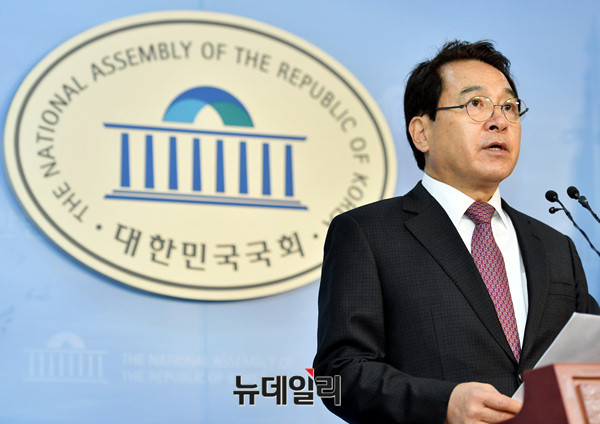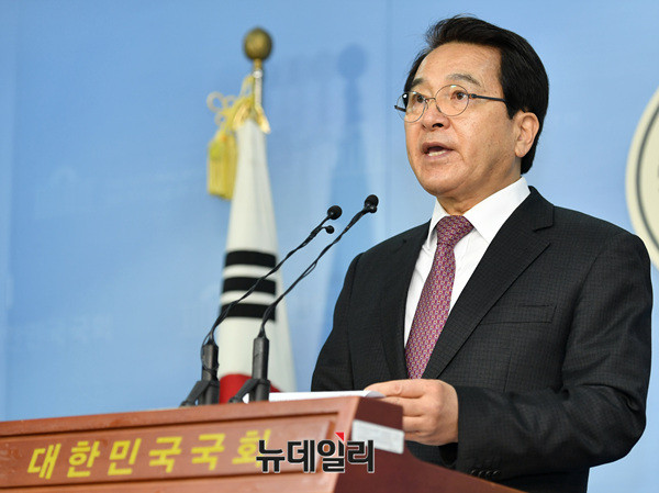 심재철 국회부의장이 29일 오전 국회 정론관에서 기자회견을 열고 발언하고 있다.