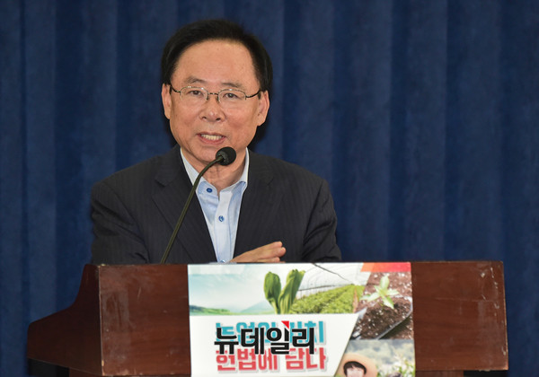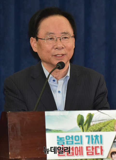 '농업의 가치 헌법에 담다' 토론회가 30일 오전 국회 의원회관에서 자유한국당 이만희 의원 주최로 열린 가운데 같은 당 정우 원내대표가 축사를 하고 있다.