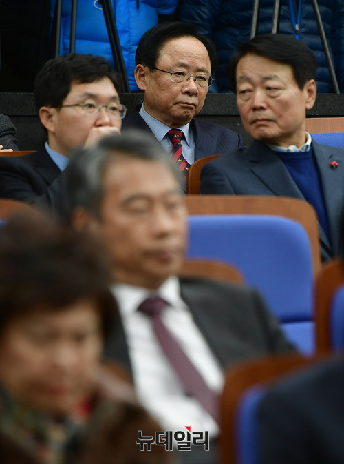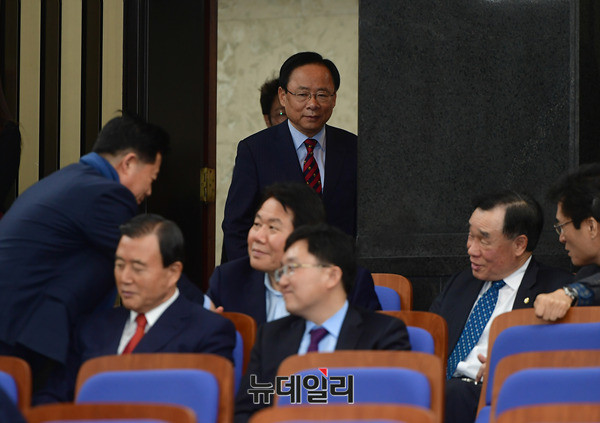 이주영 자유한국당 의원이 1일 오전 국회에서 열린 자유한국당 의원총회에 참석해 자리하고 있다.