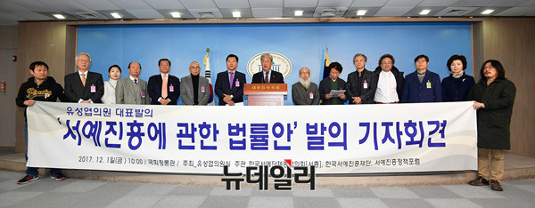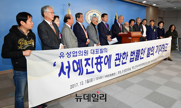 유성엽 국민의당 의원이 1일 오전 국회 기자회견장에서 '서예진흥에 관한 법률안' 발의와 관련해 발언하고 있다. 유 의원이 대표발의 하는 서예진흥법은 ▲한국서예진흥 재단 설립 ▲서예 교육을 위한 국가 및 지방자치단체의 지원 ▲서예 교육에 필요한 전문 인력 발굴 및 양성 ▲서예 해외 홍보 및 전시회 등의 사업에 대한 지원 등의 내용을 담았다.