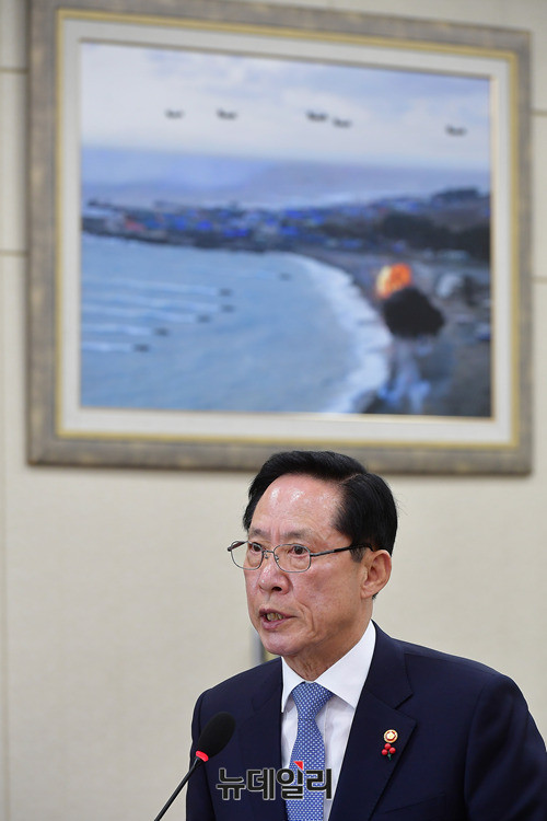송영무 국방부 장관이 1일 오전 국회에서 열린 국회 국방위원회 전체회의에서 JSA 귀순병사와 북한의 미사일발사와 관련한 현안보고를 하고 있다.