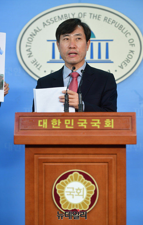 하태경 바른정당 의원이 1일 오전 국회 정론관에서 환경미화원 안전법 발의 관련 기자회견을 하고 있다.