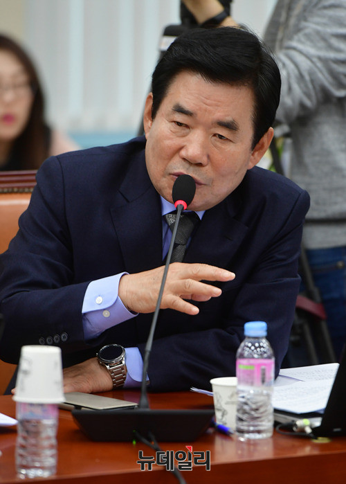 김진표 더불어민주당 의원이 1일 오전 국회에서 열린 국회 국방위원회 전체회의에서 송영무 장관에게 질의를 하고 있다.