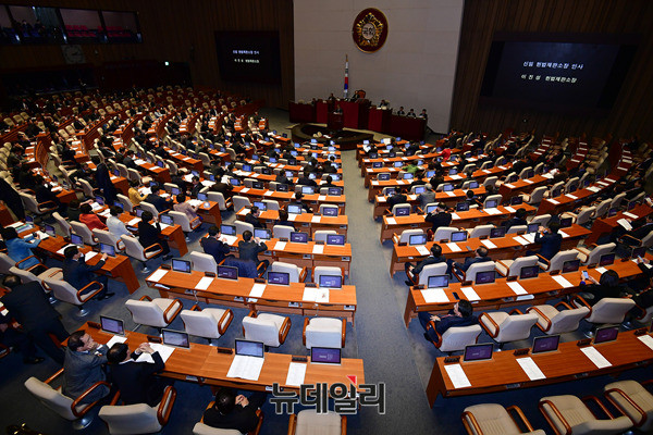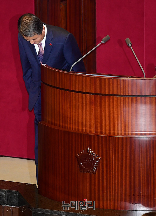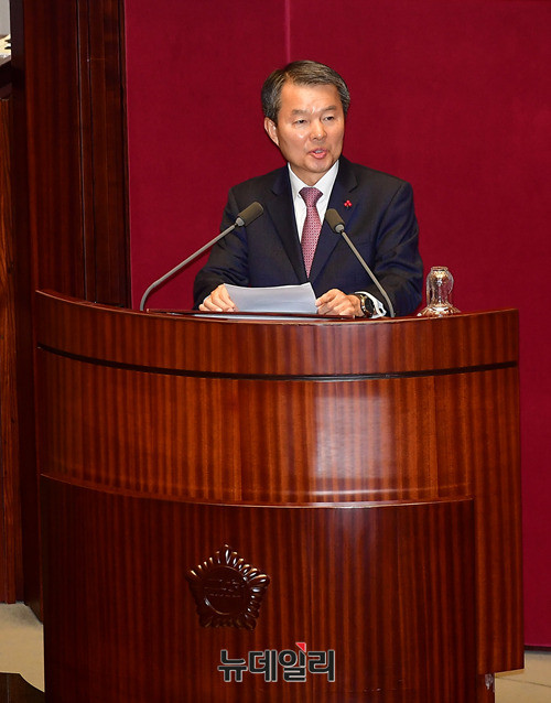 이진성 신임 헌법재판소장이 1일 오후 국회에서 열린 본회의에 앞서 인사말을 하고 있다. 이 헌재소장은 지난달 24일 임명동의안이 본회의를 통과하고, 27일 취임식을 갖은 바 있다.
