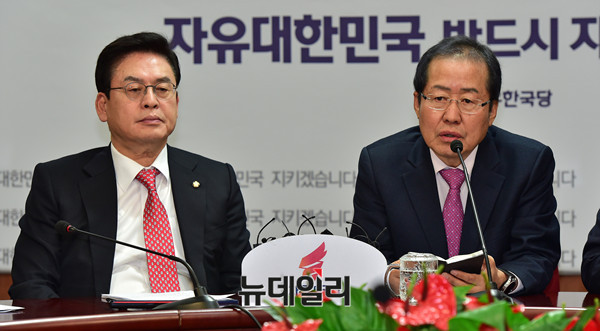 자유한국당 홍준표 대표가 4일 오전 서울 여의도 중앙당사에서 열린 최고위원회의에서 모두발언을 하고 있다.