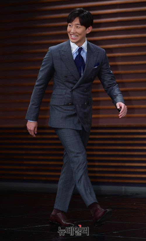 배우 강기영이 4일 오후 서울 마포구 상암MBC 골든마우스홀에서 열린 수목미니시리즈 '로봇이 아니야(극본 김소로, 이석준 연출 정대윤 박승우)' 제작보고회에 입장하고 있다. 강기영은 금융권 대표 황유철 역을 맡았다. 오는 6일 밤10시 첫 방송.