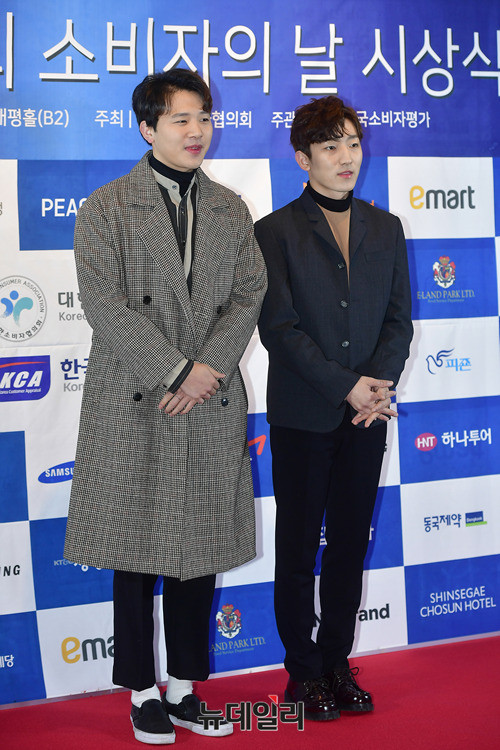 가수 멜로망스가 4일 오전 서울시청 태평홀에서 열린 제22회 소비자의날 시상식에 앞서 포토타임을 갖고 있다. 멜로망스는 '2017 음원 소비자가 뽑은 올해의 가수상'을 수상했다.