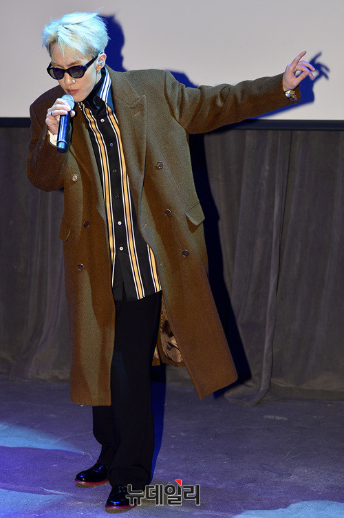 가수 자이언티(Zion.T)가 4일 오후 서울 강남구 CGV청담씨네시티에서 열린 신곡 '눈' 발매기념 쇼케이스에 참석해 신곡 무대를 선보이고 있다.