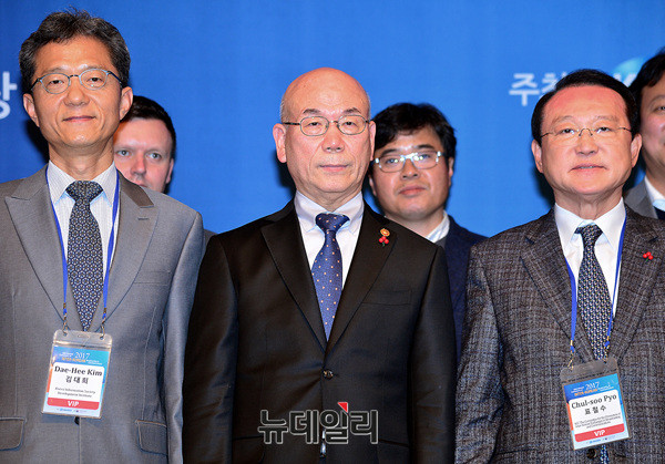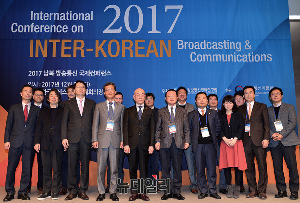 이효성 방송통신위원장과 관계자들이 5일 오후 한국프레스센터에서 열린 '2017 남북 방송통신 국제컨퍼런스'에 참석해 기념촬영을 하고 있다.