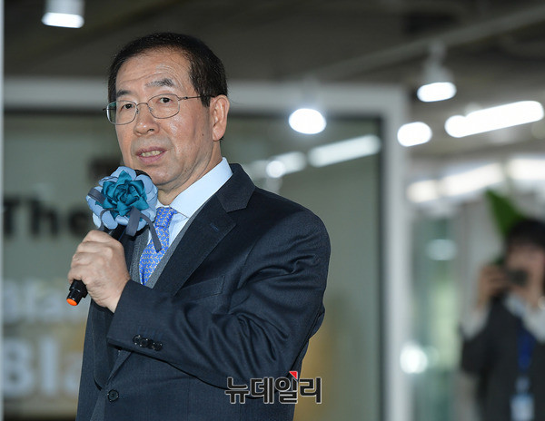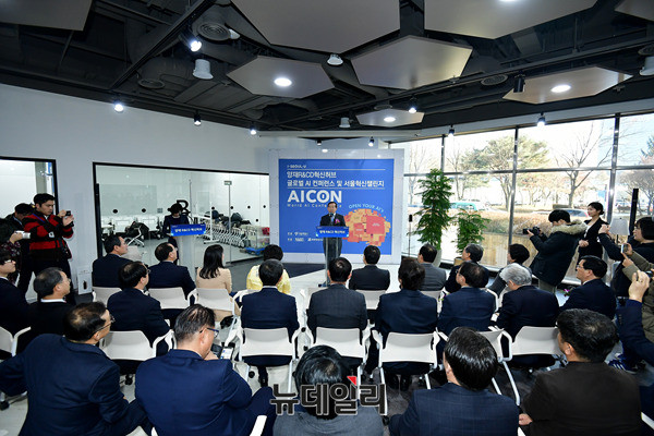 박원순 서울시장이 5일 오후 서울 서초구 한국교원총연합회회관에서 열린 개관식에서 축사를 하고 있다. 이날 개관한 '양재 R&CD 허브센터'는 4차 산업혁명의 기반이자 핵심기술인 인공지능(AI) 분야에 특화된 첫 번째 앵커시설로 서울 서초구 한국교원총연합회회관 4개 층(1‧5‧6‧8층, 연면적 2,900㎡)에 조성됐다.