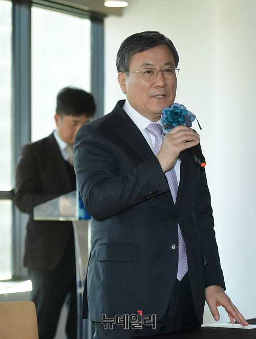 신성철 카이스트 총장이 5일 오후 서울 서초구 한국교원총연합회회관에서 열린 업무협약식에 앞서 인사말을 하고 있다. 이날 업무협약식에는 박원순 서울시장, 조은희 서초구청장이 참석했다.