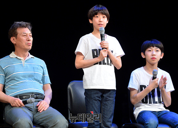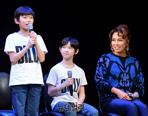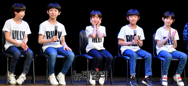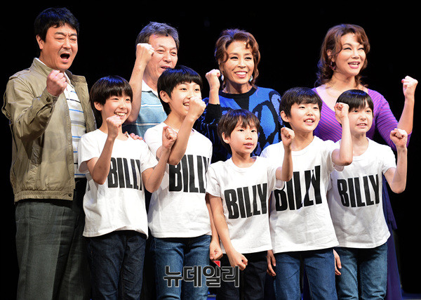 뮤지컬 '빌리 엘리어트(BILLY ELLIOT)'의 배우들(김갑수,최명경, 최정원, 김영주, 천우진, 김현준, 성지환, 심현서, 에릭테일러(Eric Taylor))이 6일 오후 서울 구로구 디큐브아트센터에서 열린 프레스콜에서 포토타임을 갖고 있다.