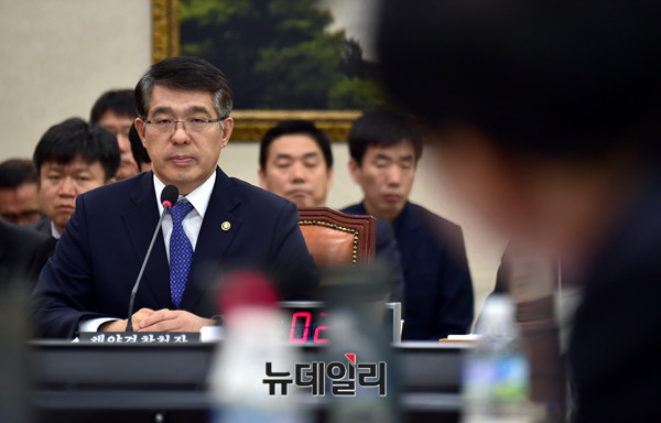 박경민 해양경찰청장이 7일 오전 국회 농림축산식품해양수산위원회의 영흥도 낚시어선 충돌사고 관련 현안보고에 출석해 의원들의 질문에 답하고 있다.