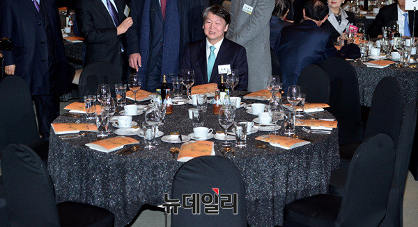 안철수 국민의당 대표가 7일 오후 서울 63시티 컨벤션센터에서 열린 '김대중 전 대통령 노벨평화상 수상 17주년 기념 행사'에 참석해 착석하고 있다.