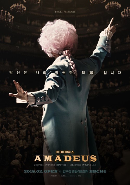 연극 '아마데우스'가 메인 포스터를 공개했다.공개된 포스터는 자신의 음악을 지휘하고 있는 모차르트와 그의 뒷모습을 바라보고 있는 살리에리 시선의 "당신은 나의 영원한 적(敵)입니다"라는 카피가 담겨 있다. 이는 모차르트와 살리에리의 관계를 단적으로 드러낸다.1985년 개봉한 동명의 영화로 유명한 '아마데우스'는 영국을 대표하는 극작가 피터 셰퍼(1926-2016)의 상상력으로 만들어진 살리에리와 모차르트의 오리지널 스토리를 담고 있다. 연극은 피터 셰퍼의 극본을 그대로 사용해 원작의 정교한 플롯을 충실히 살릴 예정이다.'아마데우스'는 궁정 음악가로서 인정받은 음악가 살리에리가 비범한 재능을 지닌 모차르트를 만나며 일어나는 이야기를 다룬다. 세간의 인정과 인기, 예술에의 재능, 질투와 시기 같은 숨기고 싶은 인간의 감정이 섬세하게 표현돼 있다.이번 프러덕션은 연출가 이지나를 비롯해 뮤지컬과 연극 무대를 넘나들며 활발한 활동을 펼치고 있는 크리에이터들이 대거 합류한다. 원작의 드라마를 충실히 살리기 위해 드라마 투르그 안병구가 참여해 관객들에게 짧은 시간 동안 잘 전달될 수 있도록 간결하고 함축적으로 작품의 요점을 농축해낸다.'나와 나타샤와 흰 당나귀', '난쟁이들' 등 창작 작품 위주로 작품을 진행하고 있는 채한울 음악감독, 한국인 최초로 프랑스 국립 무대 의상 자격증(DMA costume)을 획득한 의상 디자이너 도연, 무대 디자이너 이엄지 등이 힘을 보탠다. 또, 연극임에도 6인조의 오케스트라가 등장해 20곡이 넘는 모차르트 음악을 선보인다.연극 '아마데우스'는 2018년 2월말 광림아트센터 BBCH홀에서 개막하며, 12월 중 캐스팅을 발표할 예정이다.[사진=페이지1]