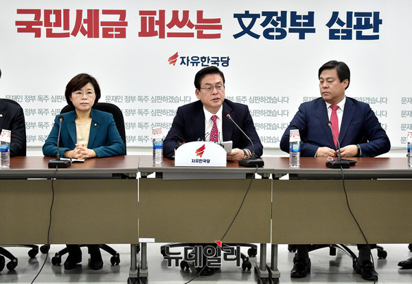 [포토] 퇴임 기자회견 갖는 자유한국당 정우택 원내대표