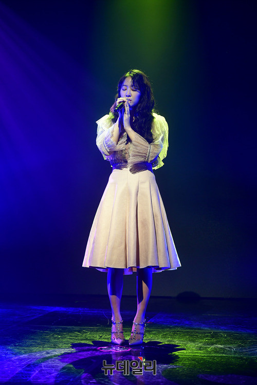 솔로로 홀로서기하는 가수 소유가 13일 오후 서울 강남구 일지아트홀에서 솔로앨범 'RE:BORN(리본)' 쇼케이스에서 수록곡을 선보이고 있다. 타이틀곡은 긱스가 피쳐링한 '기우는 밤'. 음원은 이날 오후 6시에 공개된다.